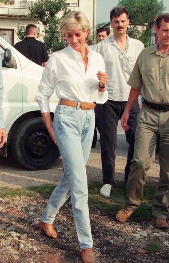 一件白色衬衫+牛仔裤,就能完成一身搭配,清爽又干练,戴安娜王妃就很喜欢这么穿。