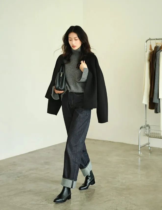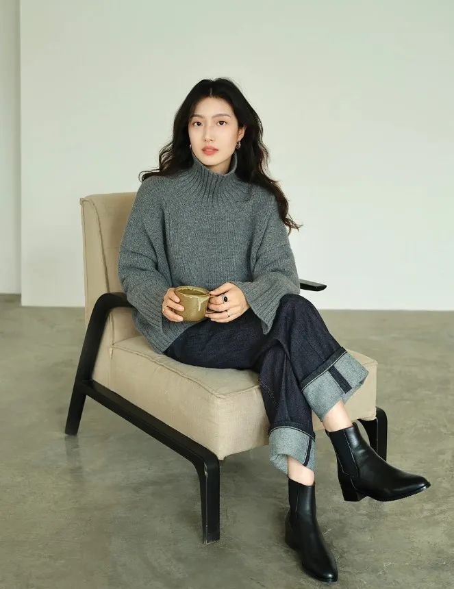 同一双鞋搭配不同的服饰,所展现出来的风格也不一样。同一双靴子,配套装,干练、潇洒;配针织衫,温柔又优雅。