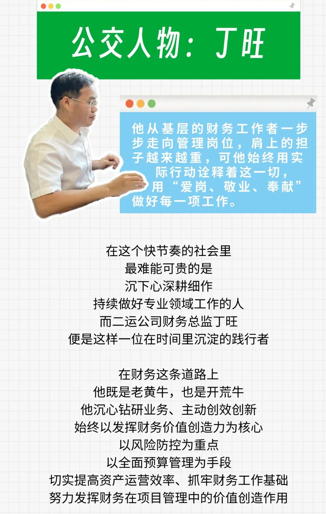公交人物丨丁旺:在时间里沉淀的财务践行者