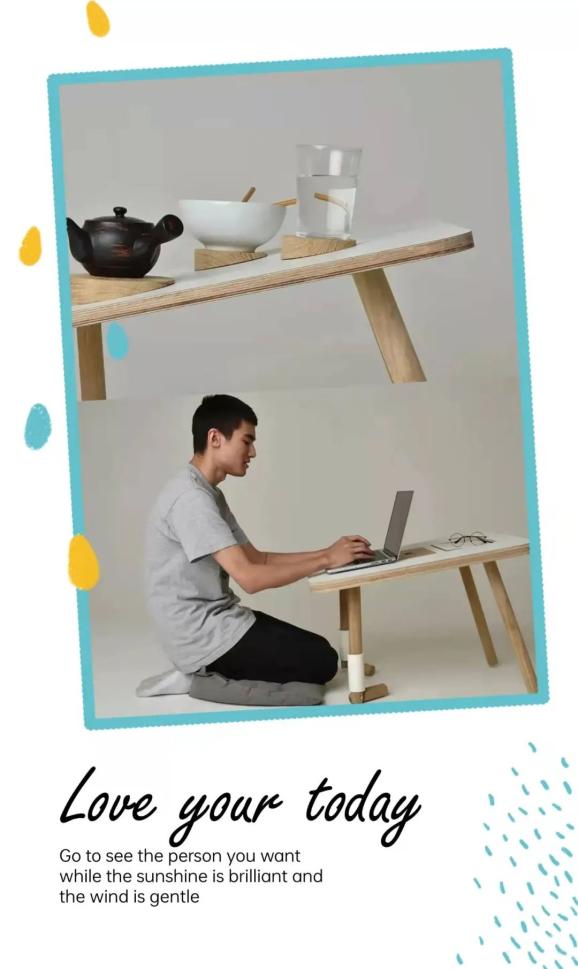 他设计的这款桌子前方两条桌腿被做成了折叠状,看起来就像是在行跪拜礼。