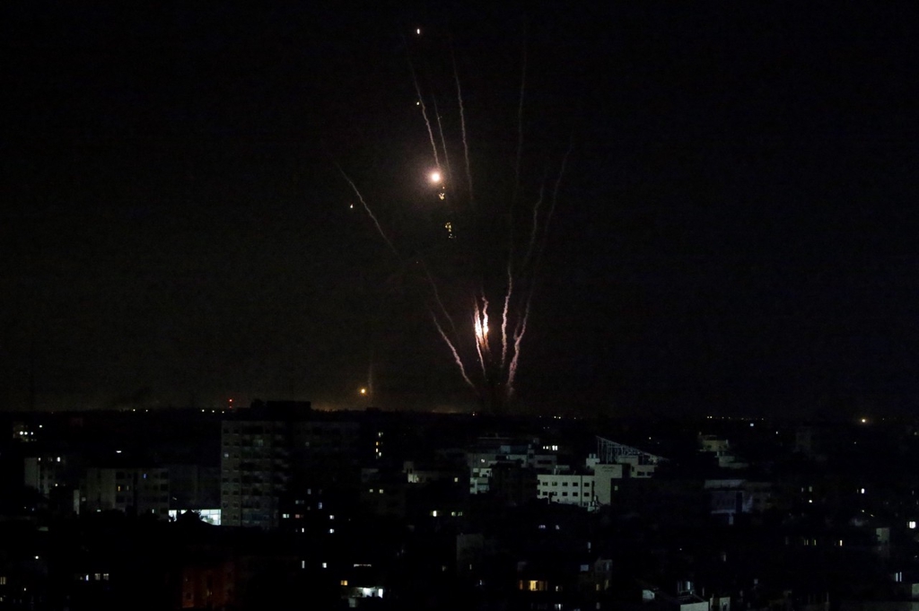 当地时间2023年10月11日,加沙城,巴以冲突持续,从加沙地带射向以色列方向的火箭弹。 IC photo 图
