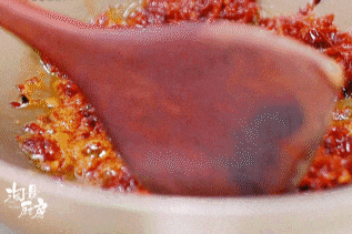 ❶ 锅中直接倒入5调羹(75g)XO酱,炒香。