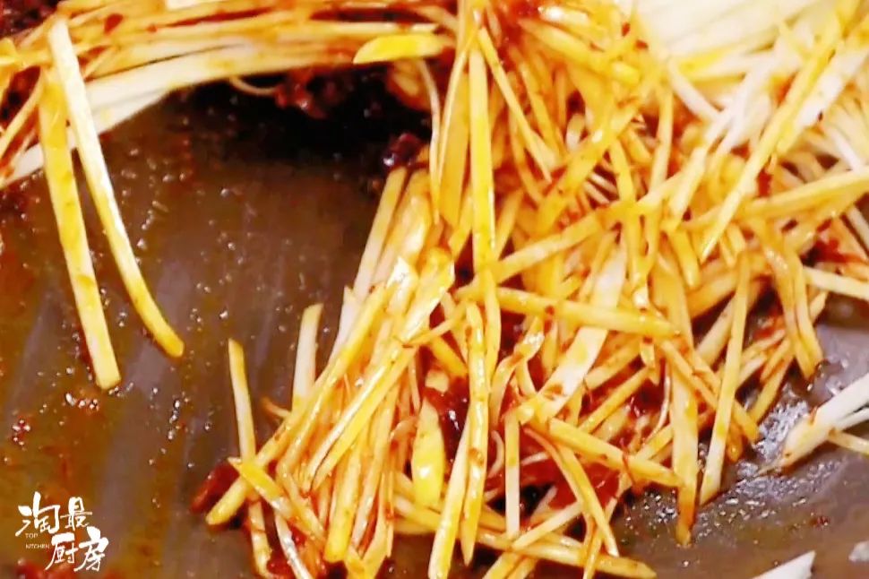 ❻ 关火后加入2调羹(30g)XO酱炒茭白丝,用筷子不停搅拌,然后就可以出锅了!