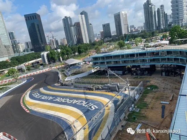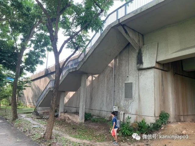 (从桥上看F1赛道及维修站)虽然沿途风景绮丽,这段步行道对老年人还是有些挑战。一是要走上二十多米高的台阶上桥,二是桥上及附近没有遮荫处,在太阳底下徒步很辛苦。