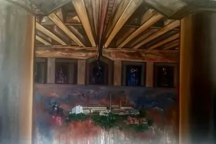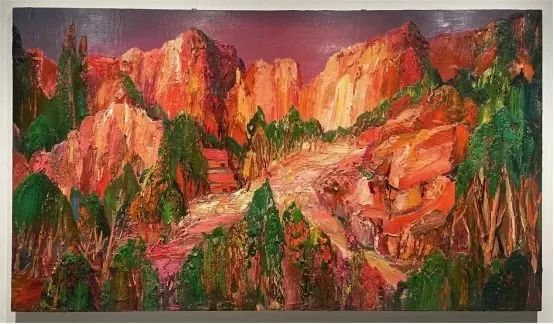 尹朝阳 黄昏禅寺 2022 布面油画 385×220cm尹秀珍