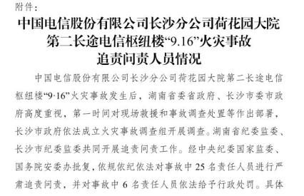 经调查认定,中国电信股份有限公司长沙分公司荷花园大院第二长途电信枢纽楼“9·16”火灾事故是一起因火源和可燃物管理不善引起的在社会面有较大影响的一般生产安全责任事故。
