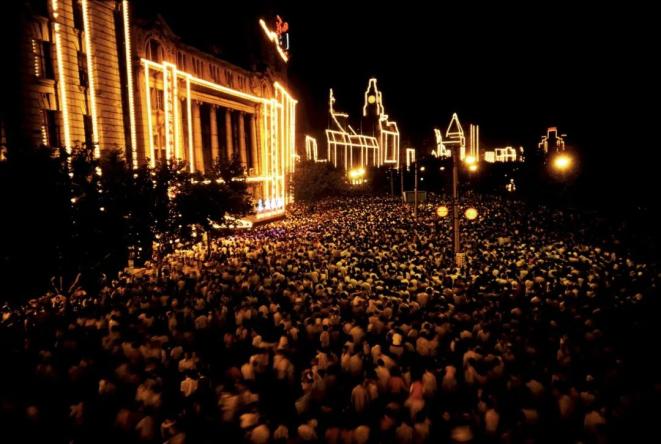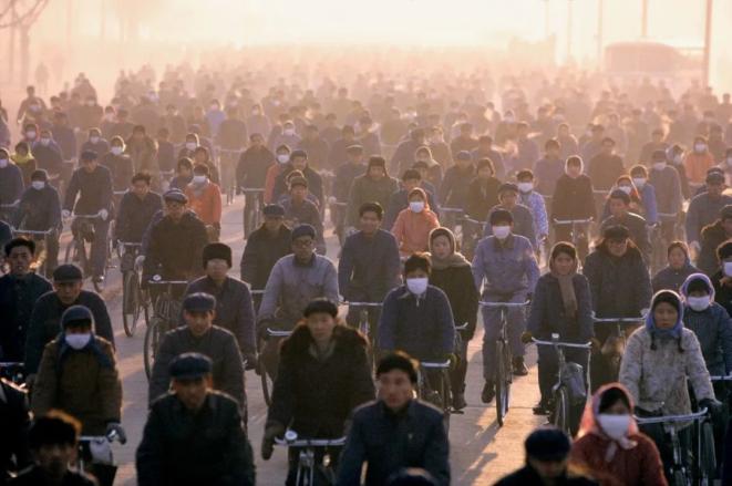 内蒙古包头,1984 人山人海的自行车队显得尤其整齐,十分壮观。