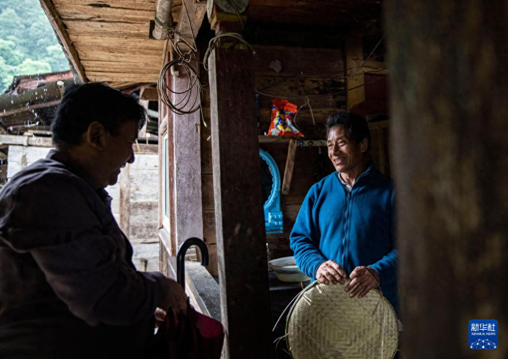 在西藏墨脱县背崩乡巴登村,村民和来访的客人交流(10月11日摄)。新华社记者 孙非 摄