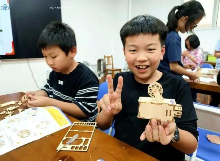 药食同源展区,工作人员为孩子和家长讲解中药知识14时,活动教室里“我是小小放映师”动手课堂准时开讲。通过一部纪录片,孩子们在奔走于大峡谷深处的公益放映员——杨明金的故事中,被这位“中国好人”的精神所感染,也知道了放映电影需要哪些设备以及一台电影放映机由哪几部分组成等基本原理。在最受大家期待的动手环节,天津科技馆的科技辅导员们带着参加活动的孩子们亲手组装了一个和真实放映机一样的“小小放映机”。“我一开始把凸透镜装反了,发现不能成像,又返工了一次,让我彻底弄懂了凸透镜成像等光学原理。”河西区恩德里小学六年级学生原煜城兴奋地说。