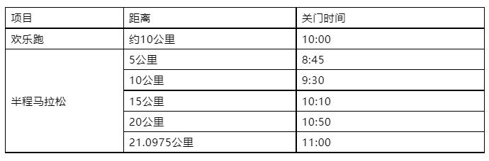 关门时间按自然时间计算,具体见下表(按上午8:00鸣枪起跑)