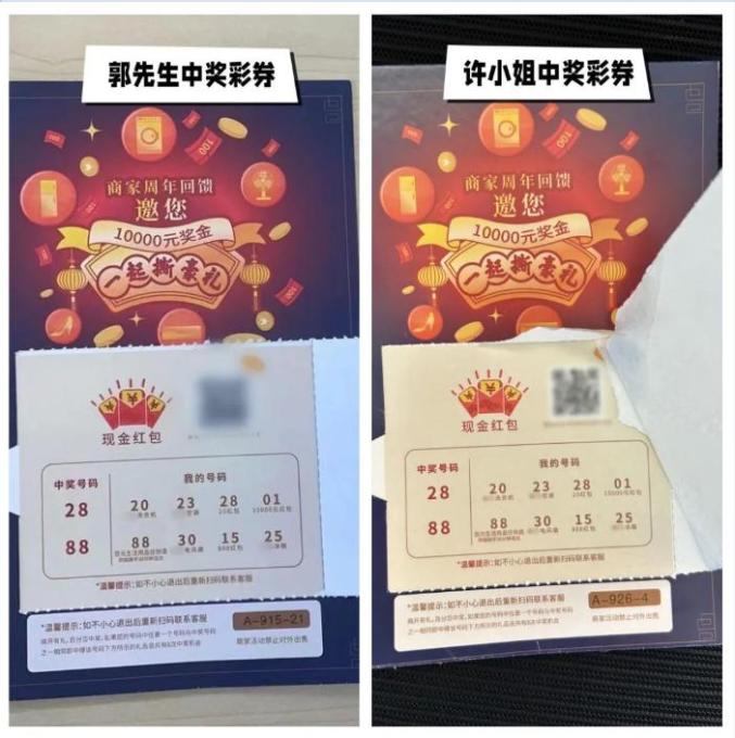 许小姐和郭先生收到的邀请卡,只有卡片编号不同,人人都是“N0.88888888”VIP,中奖号码、奖品都相同。