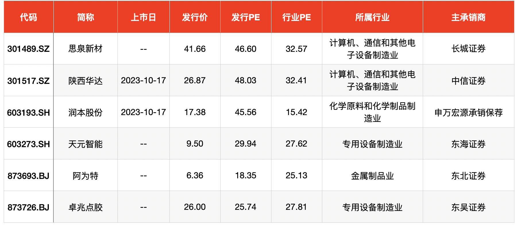 截至10月16日,A股共有2只股票已公布上市计划,且均为本周二上市,分别是陕西华达科技股份有限公司(简称“陕西华达”,301517.SZ)、润本生物技术股份有限公司(简称“润本股份”,603193.SH)。