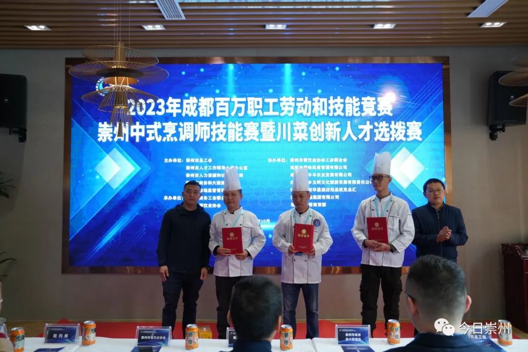 10月12日,2023年成都百万职工劳动和技能竞赛崇州中式烹调师技能赛暨川菜创新人才选拔赛举行。来自我市15家餐饮服务单位的22名职工同台竞技、切磋厨艺。