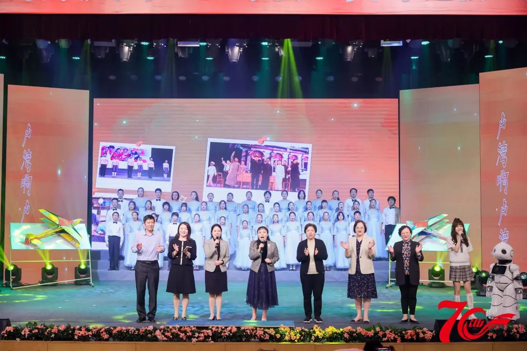 七秩峥嵘,弦歌不辍,科学教育的故事一直在卢湾悄然上演。会上,两所学校的师生以情景舞台剧《七秩芳华 星耀卢湾》献礼学校70周年华诞,用画面讲述科学教育的动人场景,用表演诠释科学教育的丰富内涵,用声音传递科学教育的生命力量。从初代卢湾人“擎起科学救国”梦起,卢湾师生砥砺科学创新,铸就英才无数。上世纪八九十年代,卢湾人高举“科学人文”旗帜,不断传承、发展、超越,“叠罗汉式”的迭代发展科学教育特色品牌,培养了一批批具有科学技能、创新思维和实践能力的“小小科学家”,形成了学校独特的科学教育特色发展之路。直至今日,卢湾科学教育天空群星璀璨。学校以培育“面向未来具有高度科学素养”的创新型人才为目标,为学生习得科学知识、形成科学思维、养成科学态度、培育科学精神搭建了平台和空间,造就了人工智能、信息学奥林匹克、DI、头奥、创新课题、航模在内的多个有影响力的科学教育品牌项目,适应了学生普及性、个性化、多层次的科学素养发展需求,为国家输送了诸多人才。