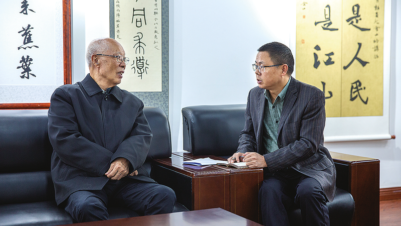 谭述森(左)接受本报记者采访。记者张鑫坪摄