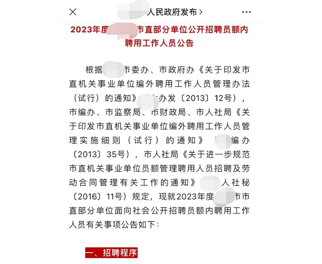 ▲吕舒所在市人民政府发布的聘用公告吕舒告诉红星新闻记者,在她的理解里,编外人员的存在就是因为需要完成的工作和任务仅靠编内人员无法支撑,有单位还在招聘就说明这个单位现在的人员还是不够用。
