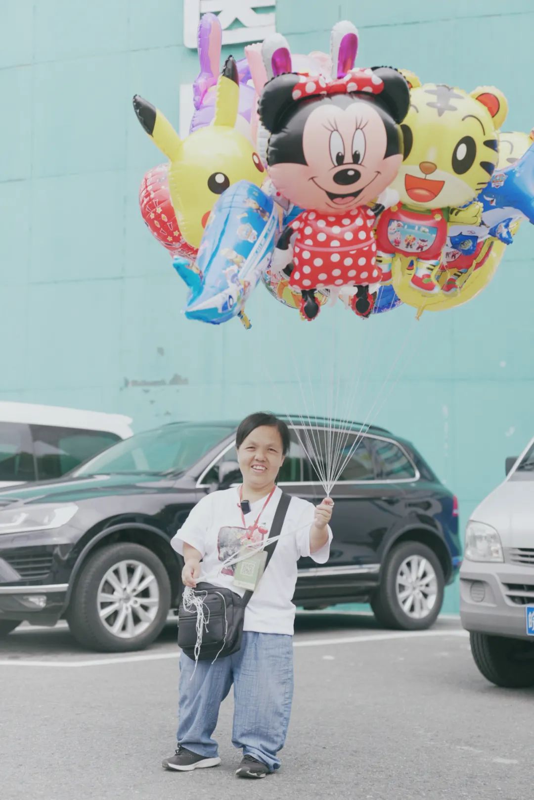 在夏天,面对炎炎烈日,彭霞的额头布满了一层汗珠,但她始终微笑着,她的乐观感染了不少路人。十多年来,彭霞以卖气球为生,一只气球仅赚2元钱。彭霞说,生意不错时,一天能赚七八十元,平时一天也能赚到五六十元。