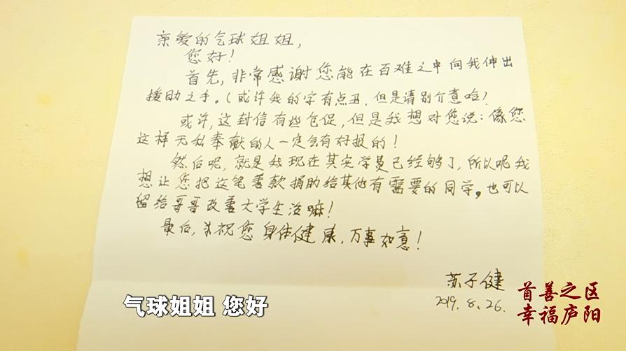 “第二天我就去了希望工程办,当时捐款的地方在二楼,我腿脚不便爬了很久”说起第一次给希望工程捐款的经历,彭霞记忆犹新。之后,彭霞随公益组织去了金寨大山里走访,困难家庭的孩子们自立自强的劲头感染了她。从此,彭霞和丈夫开始以月为周期,从卖气球的收入中省出一部分,作为捐给孩子们的助学金。