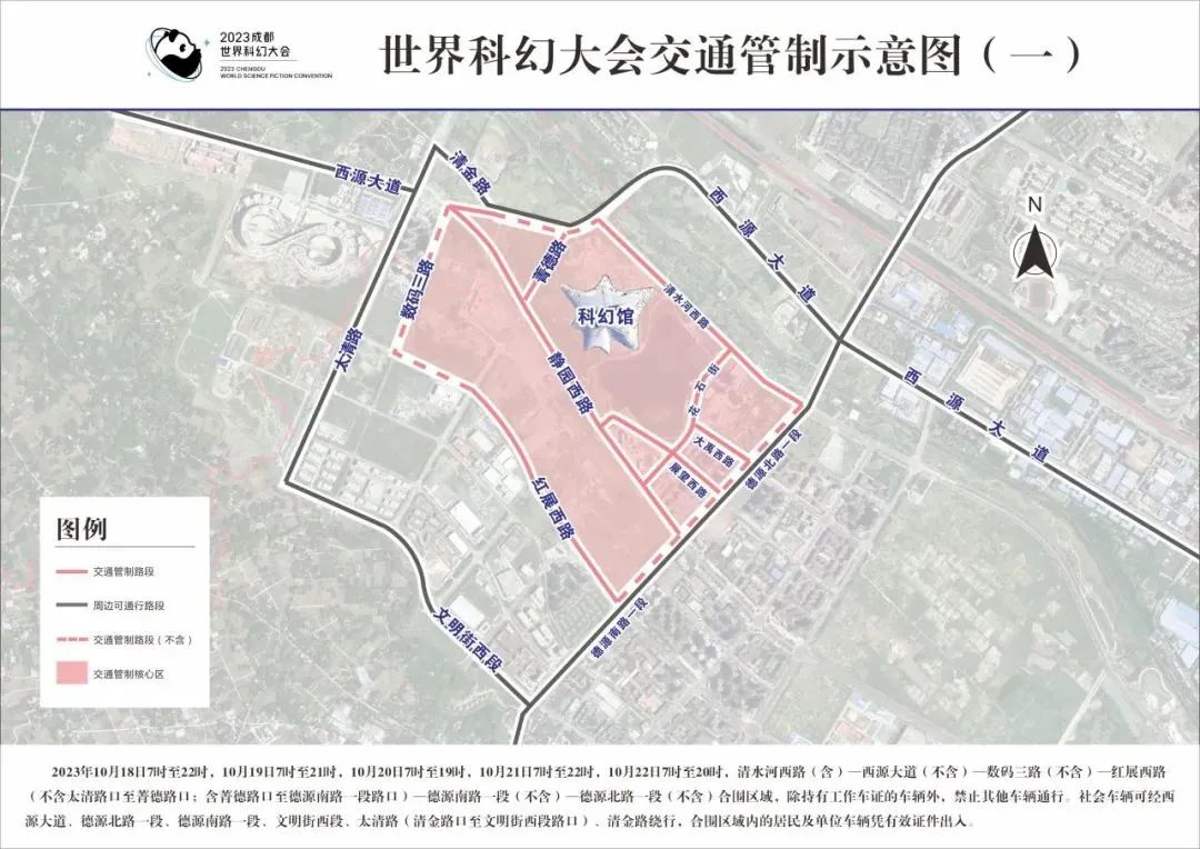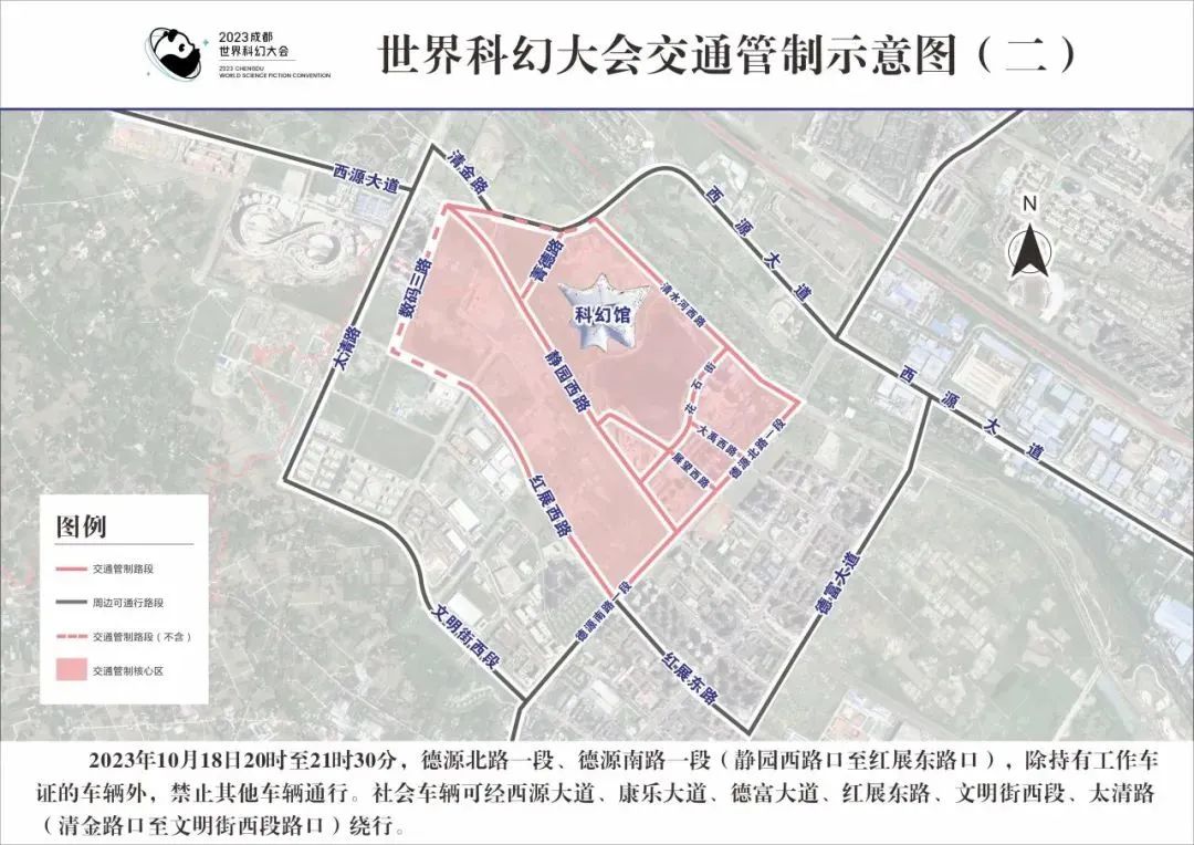 一、临时交通管控措施为保障世界科幻大会安全、顺利进行,根据《中华人民共和国道路交通安全法》的有关规定,公安机关交通管理部门将对成都科学(幻)馆周边相关道路分时、分段采取以下临时交通管制措施: