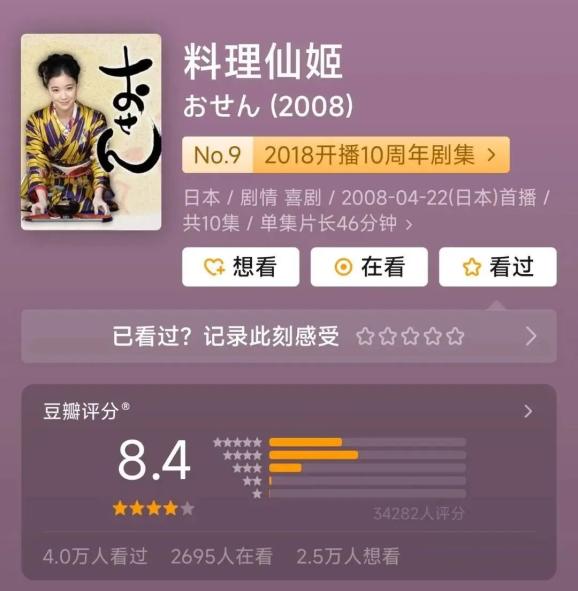 苍井优在这部剧中贡献出了演艺生涯的最佳颜值(图源:剧情截图)如今,《料理仙姬》在豆瓣平台依然保持着8.4的高分,网友们的评论也在实时更新,“感动”“坚守”“养眼”“匠心”等词汇的出现频率极高。