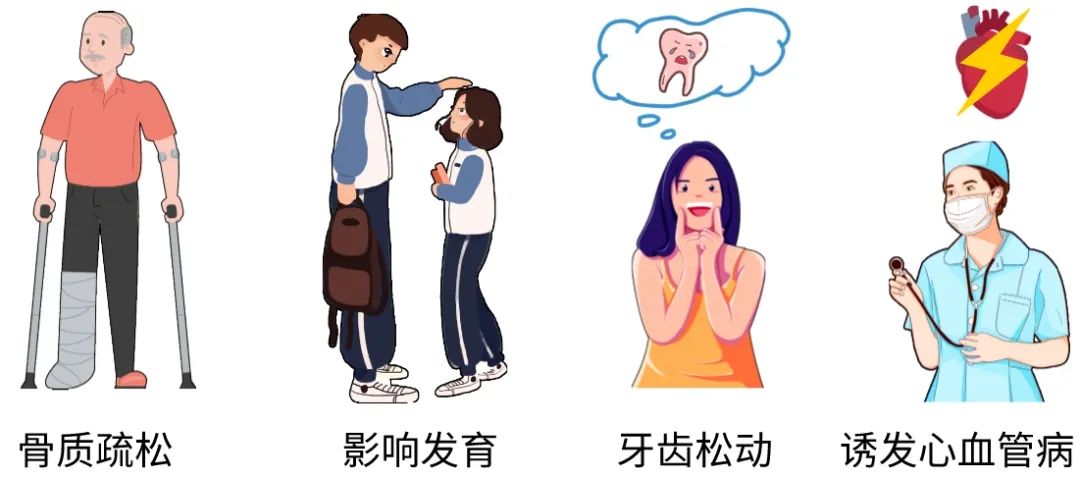 影响发育:不仅影响儿童青少年的骨密度,还可能影响长高。