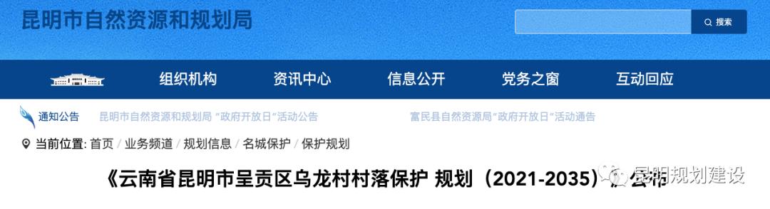 10月17日,昆明市自然资源和规划局官网发布《云南省昆明市呈贡区乌龙村村落保护规划(2021—2035)》,根据公示,此次保护规划包括建筑保护整治、滇池生态保护、村庄格局保护,以及文旅发展利用。