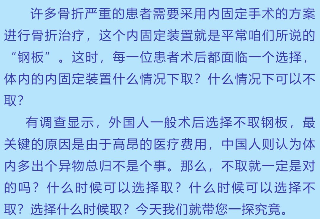骨折患者看过来——“手术放进去的钢板要取吗?什么时候取更好呢?”
