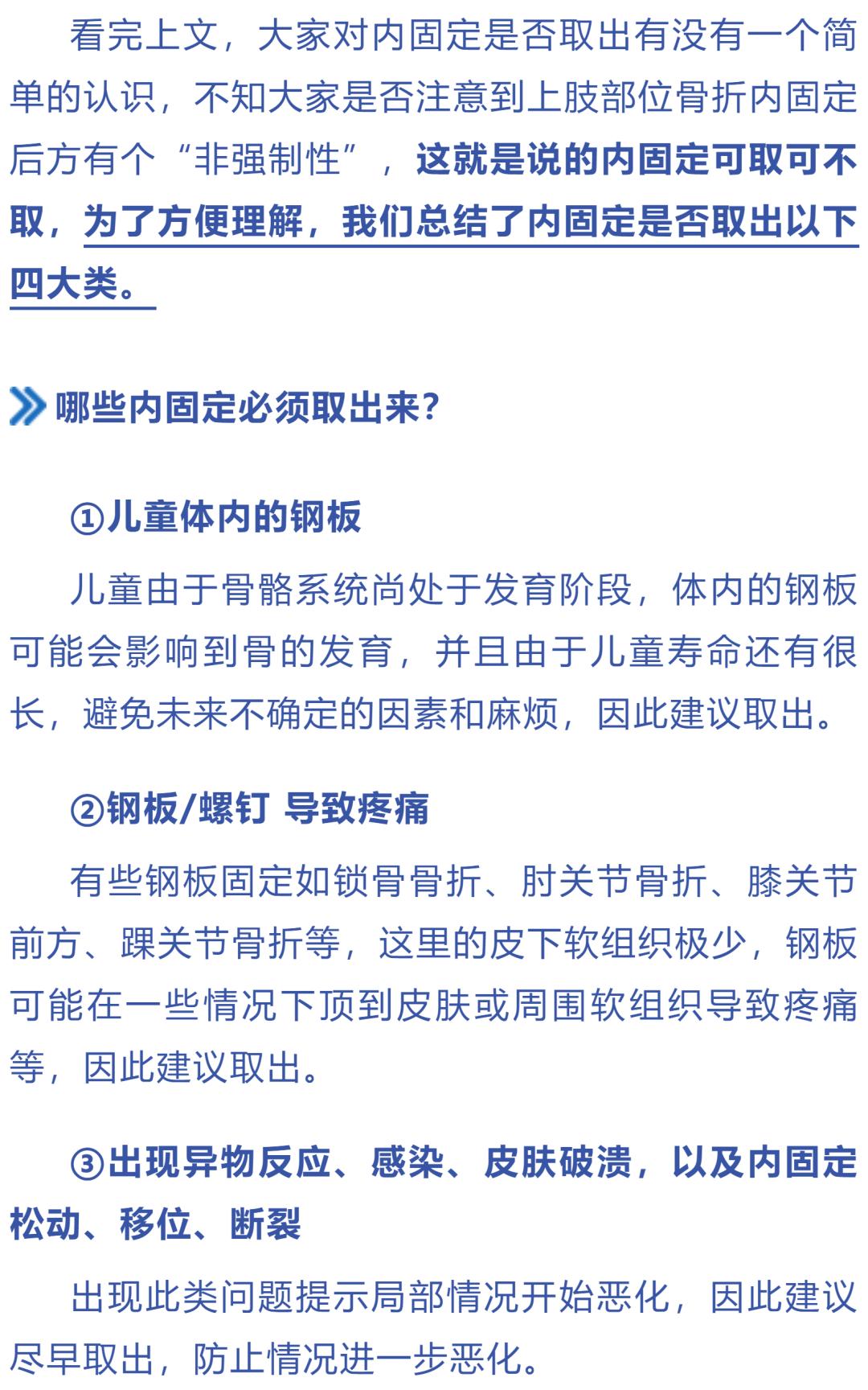 ①本文作为科普参考,帮助骨折患者了解内固定是否需要取出,建议根据个人情况和骨科医生的医嘱决定是否取内固定;