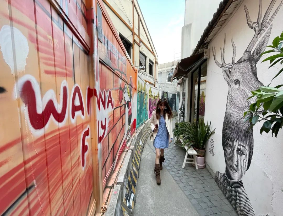 当艺术范遇到烟火气漫步园区,你会发现各式充满奇思妙想的作品。如一扇生锈的斑驳铁门在艺术家笔下幻化成了一幅《搪瓷杯》,工厂的历史悄然融于创意之中。一面老旧墙面变成了俏皮的笑脸,张大的嘴巴,仿佛在朝你嘻嘻笑着。