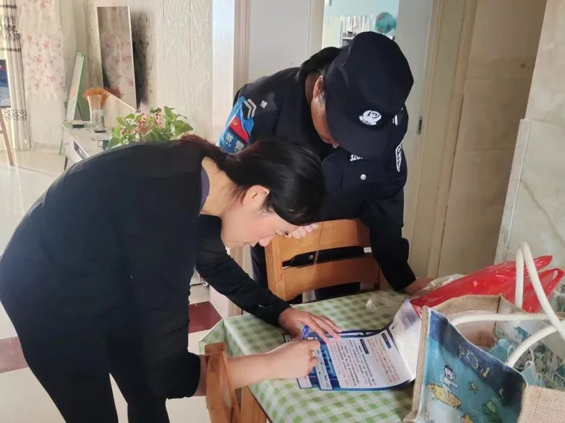 活动中,宣传民警辅警挨家挨户走访,通过发放宣传册、现场讲解等宣传方式,面对面向群众宣传电信网络诈骗防范知识,提醒群众不轻信来历不明的电话、短信,不向陌生人汇款、转账,并引导群众签订不参与电信网络诈骗承诺书。