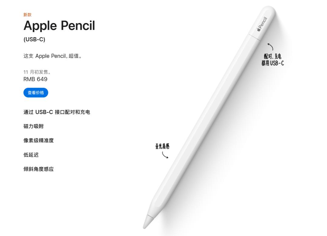 简单来说,这款外观和二代 Apple Pencil 酷似、底下括号里打着 “ USB-C ” 、售价 649 元的新款苹果笔。。。