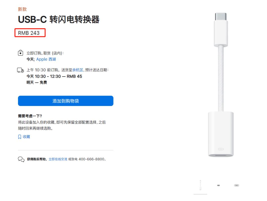 而这 Lightning 转 C 口转接线吧,价格高达 3.075 个花西币,对于工资没涨的朋友来说,的确不算很友好。