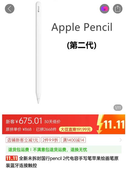 想要功能更全的,二代 Apple Pencil 的电商平台价也就 670 多,海鲜市场闲置 99 新卦四五百的也不少。。。