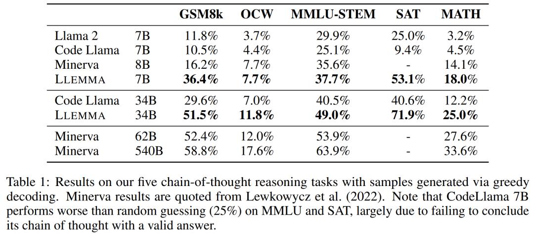 在实验部分,研究者旨在评估 LLEMMA 是否可以作为数学文本的基础模型。他们利用少样本评估来比较 LLEMMA 模型,并主要关注没有在数学任务监督样本上进行微调的 SOTA 模型。