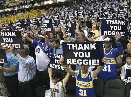 篮球世界并不缺少这样的城市英雄。邓肯、科比、诺维茨基,举牌子让纳什安心离开的太阳球迷,当然还有举牌届的老前辈雷吉-米勒。在他最后一场比赛中,每个主场球迷都举着同样的牌子:“谢谢你,雷吉。”