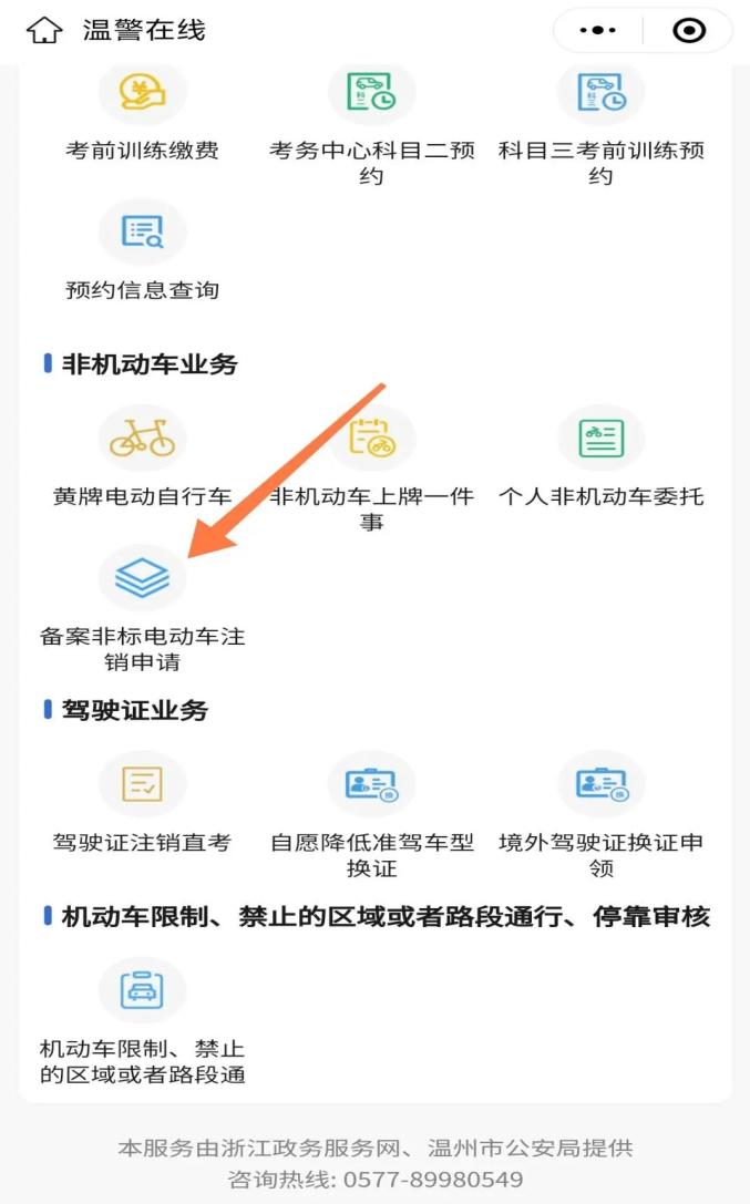 4找到“非机动车业务”点击“备案非标电动车注销申请”