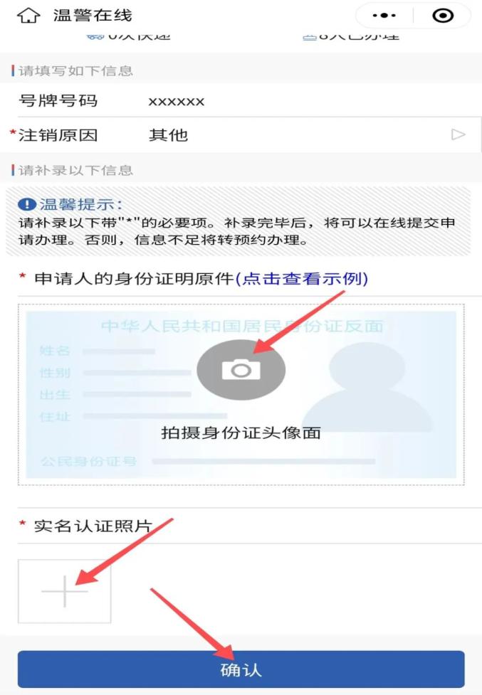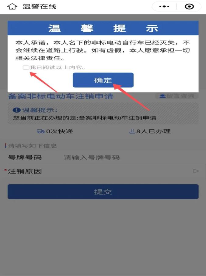 6填写“号牌号码”,选择“注销原因”,然后点击“提交”。