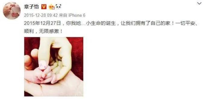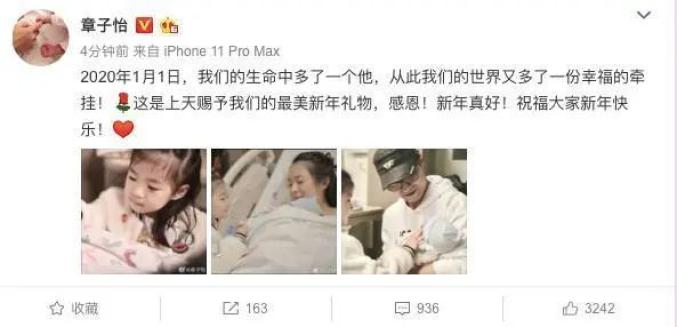 2020年1月3日上午12点15分左右,章子怡在微博发文官宣自己已二胎生子。