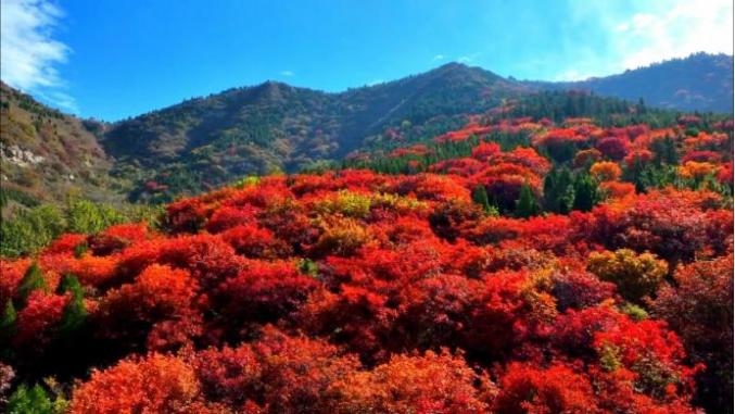 还曾有无名诗人重阳节在济南登高远眺,看到了宜人的山水之美,心情愉悦,写下了这句诗:“九重阳日望高临,泉水喧喧山色阴。” 济南泉水喧嚣的声音再深邃的大山中流淌,这幅景色,想必是济南的南部山区吧。经过一个夏天雨水的滋润,秋天济南的泉水十分充沛。作为济南的泉源,南山的泉水重阳正是“欢腾”时。如果这位诗人重阳穿越回现在的南部山区,他不仅能看到飞流直下的泉水瀑布,还能看到漫山遍野的红叶,还能品尝到红透枝头、甜到心头的“高光效”苹果。