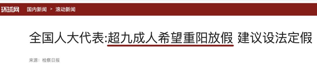 不放假并不代表完全不该放假。其实,早就有许多全国人大代表多次建议,“将重阳节设为法定节假日”。