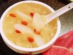 梨去皮去核切块,连同枸杞一起用水煮,至枸杞皮完全舒展,梨熟透。枸杞护眼,梨润肺防燥,适合秋冬用眼多的上班族。