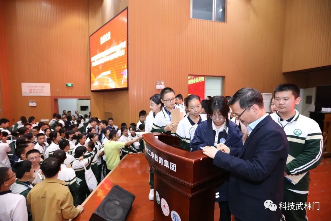 两位院士现身说法,妙语连珠,引经据典,从专业领域和个人成长角度耐心为学生们答疑,现场掌声经久不息。会后,学生们纷纷“追星”签名,两位院士与学生们耐心交谈并鼓励,为学生们埋下了科研的种子。