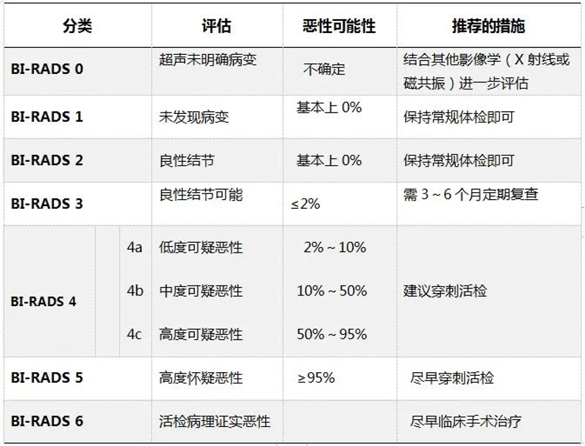 简单的说,乳腺阶级 2 级以下问题不大,3 级需要重视,4 级以上建议进一步评估,比如穿刺活检。