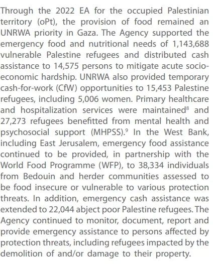 联合国近东巴勒斯坦难民救济工程处2022年的救助报告关于加沙和约旦西岸的部分内容截图