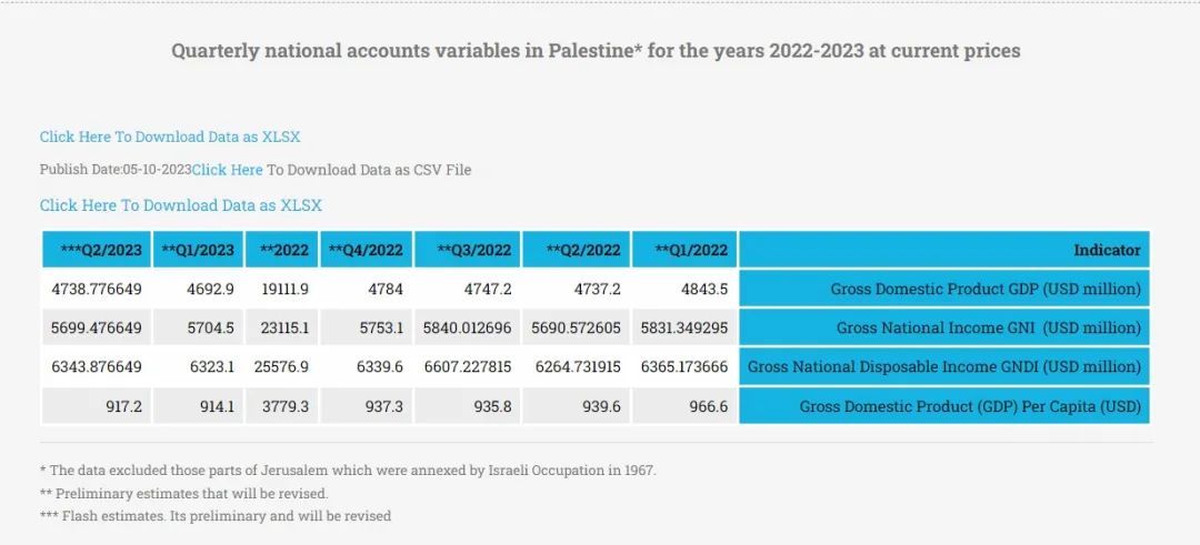 巴勒斯坦中央统计局的2023年GDP统计数据