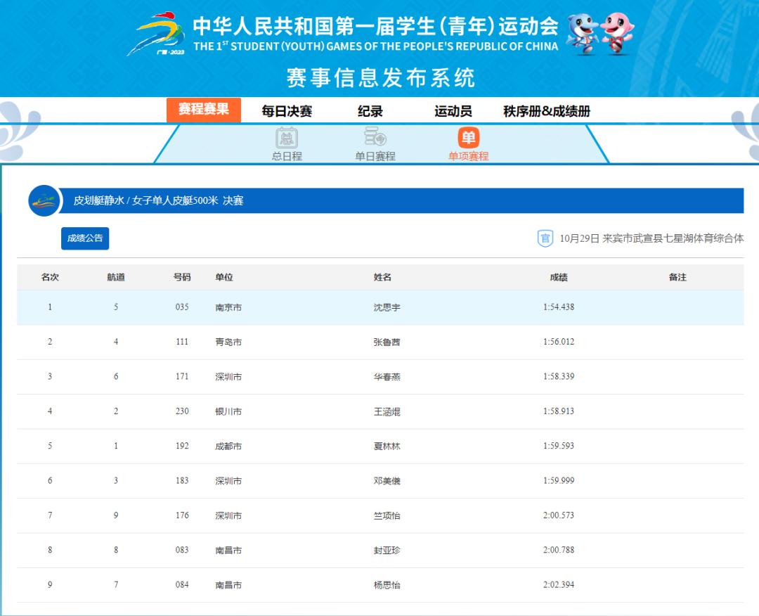 10月30日,第一届全国学生(青年)运动会皮划艇静水比赛项目将产生女子单人划艇500米、女子双人皮艇500米、男子单人划艇1000米、男子单人皮艇1000米等4个项目冠军。图文:武宣县融媒体中心综合