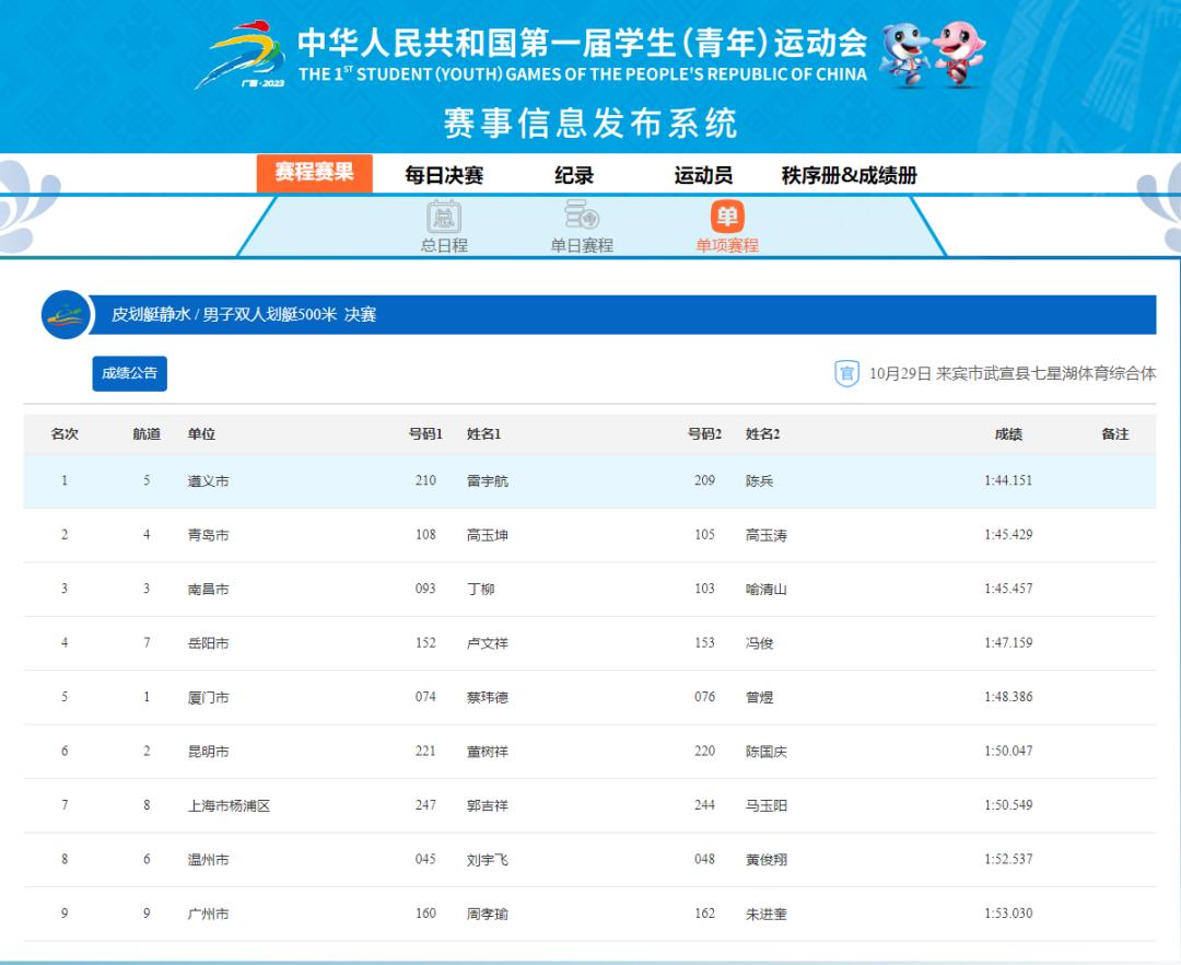 (官方截图)遵义市代表队的雷宇航、陈兵以1分44秒