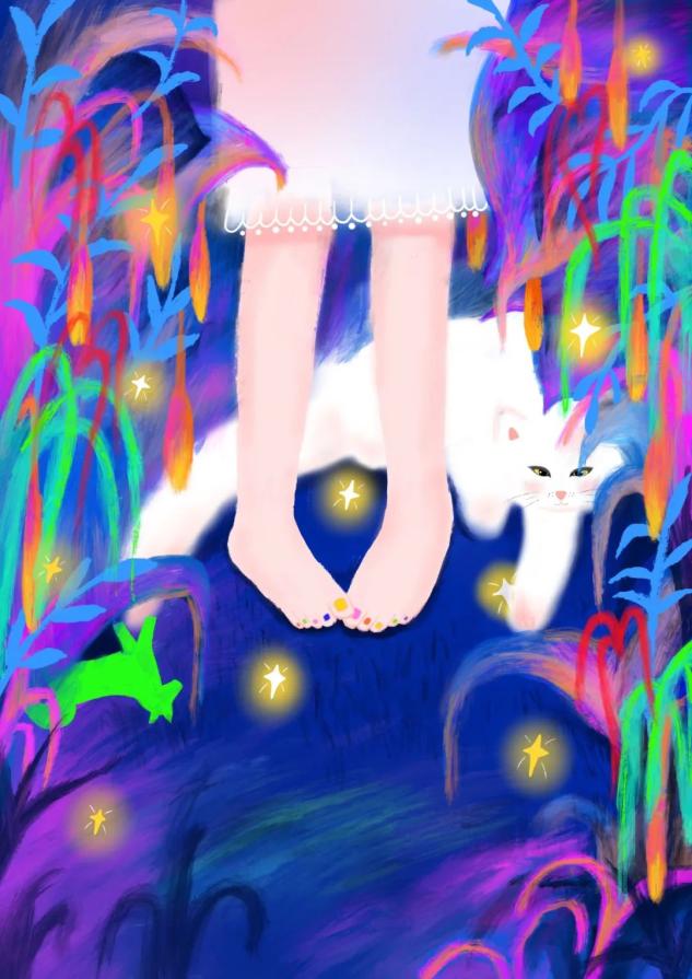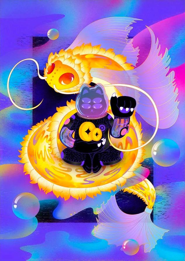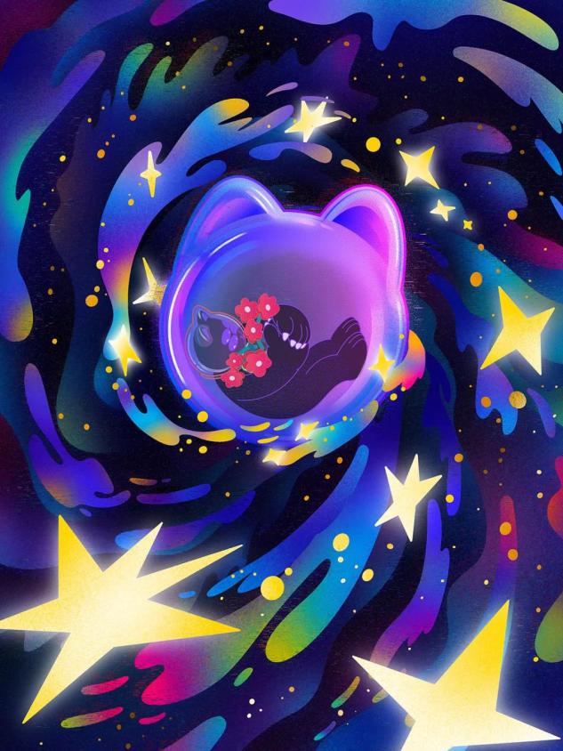 在一个陌生的星球上,我邂逅了一只猫,从此开始了一段相互陪伴的旅程。我们一同遇到了充满魔法的蘑菇,艳丽的玫瑰,还有飞翔在天空的鱼。于是我决定用画笔将它们记录下来,并把这段斑斓的旅程与你们一同分享。艾居AIJU