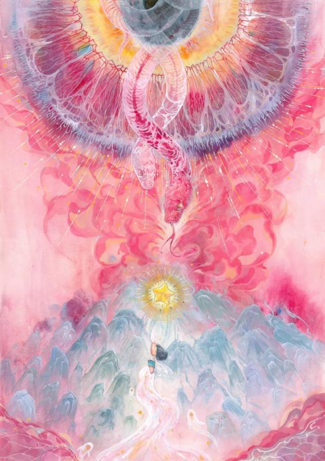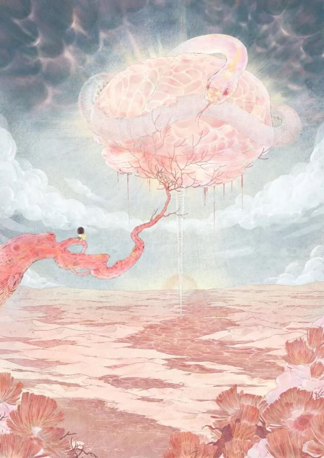 艾居,插画艺术创作者/小红书优质博主/NFT数字艺术创作者。擅长通过水彩、水墨等表现形式创作天马行空的插画作品,风格多变。作品多以自己养的九条蛇为主角,画面主张追求与自然界的和谐,认为人应该顺应自然与大道的规律,与自然相处和谐共生,不应对自然进行过度干预。蛇作为画面的主要元素,象征着生命与死亡,智慧与变化,神秘独立与自由治愈。意在呼吁观者,尊重自然界的多样性和平衡,热爱并敬畏我们生存的天地。爱丽莎- ALS