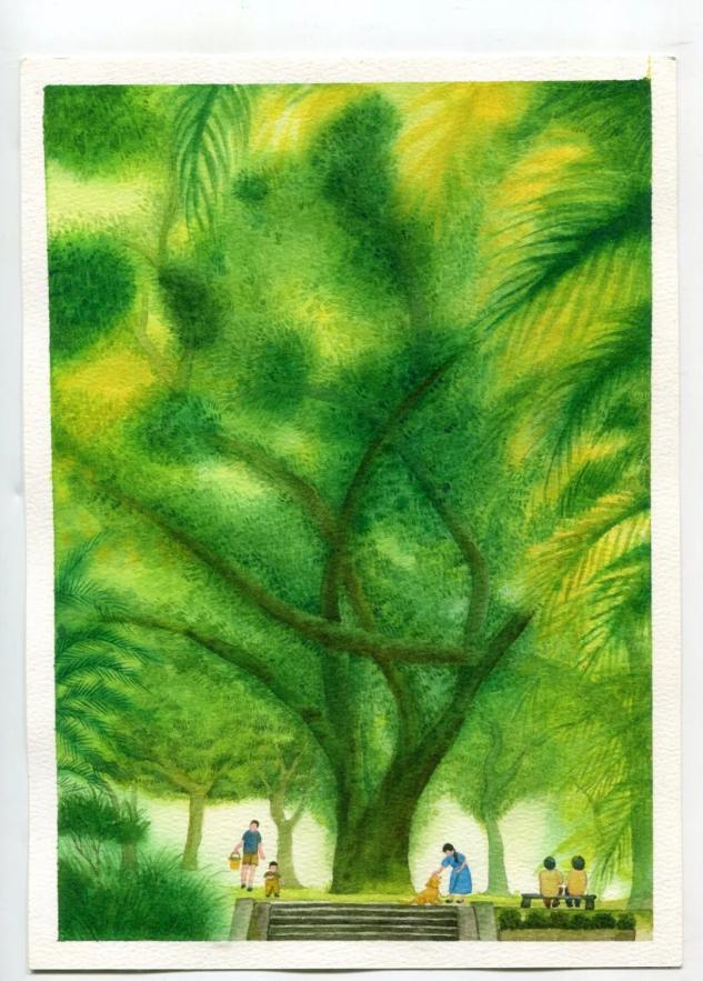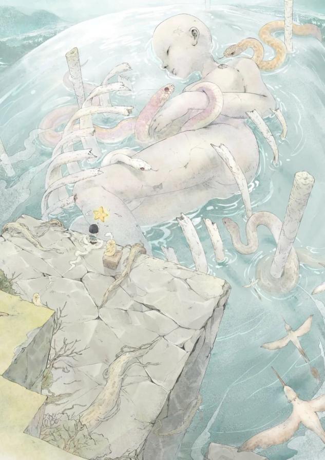 插画师蛾蛾蛾,喜欢描绘大自然,擅长用水彩画出治愈神秘的自然世界作品《午睡的梦魇》入选浙江省第十四届水彩.粉画展